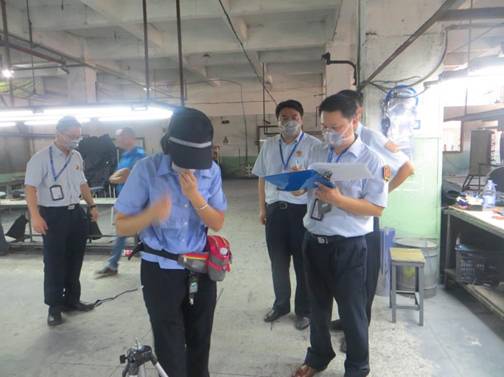 执法人员会同广州职防院技术人员开展职业危害因素检测