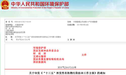 我国环保工作不断强化,《“十三五”挥发性有机物污染防治工作方案》发布