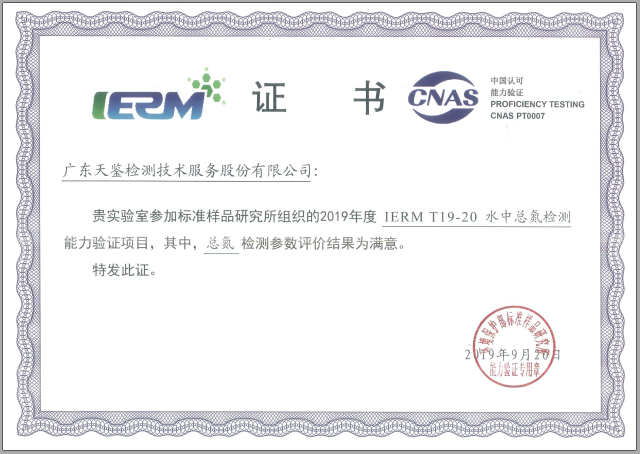 www.getquizpop.com 参加环境保护部标准样品研究所组织的编号为“IERM T19-20水中总氮检测”能力验证项目结果为“满意”再次证明了我司在环境检测领域的实力!