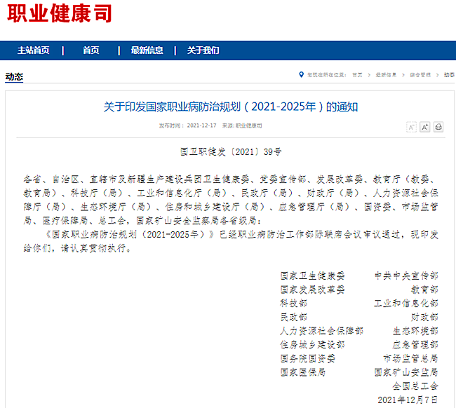 国家职业病防治规划(2021-2025年)