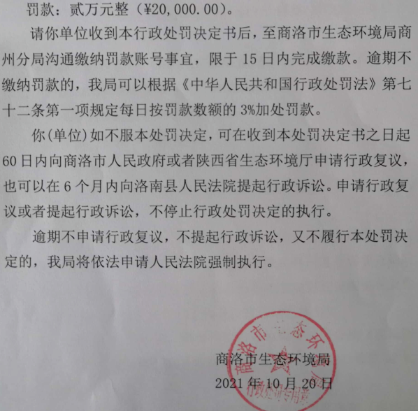 2021年10月25日,陕西省商洛市生态环境局发布对商州南秦医院行政处罚决定书陕H环罚〔2021〕206号,因医院放射科安装一台Ⅲ类射线装置(杭州美诺医疗科技有限公司生产的 Staray2000I 型数字化X射线成像系统)未依法取得辐射安全许可证,从事射线装置使用活动的行为,罚款2万元人民币。
