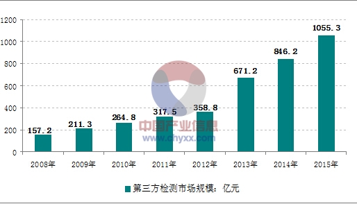 2008-2015年中国第三方检测市场规模预测